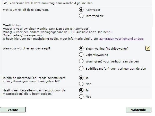 Klik op het tabblad ‘nieuwe aanvraag’. Hierna gaat u naar het formulier: ISDE aanvraagformulier (warmtepomp, zonneboiler, isolatie, elektrische kookvoorziening en aansluiting warmtenet)