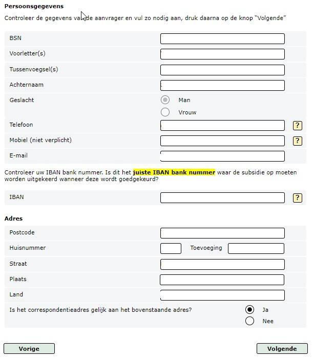 U komt nu op onderstaand scherm terecht, deze kunt u invullen. Druk vervolgens op volgende.